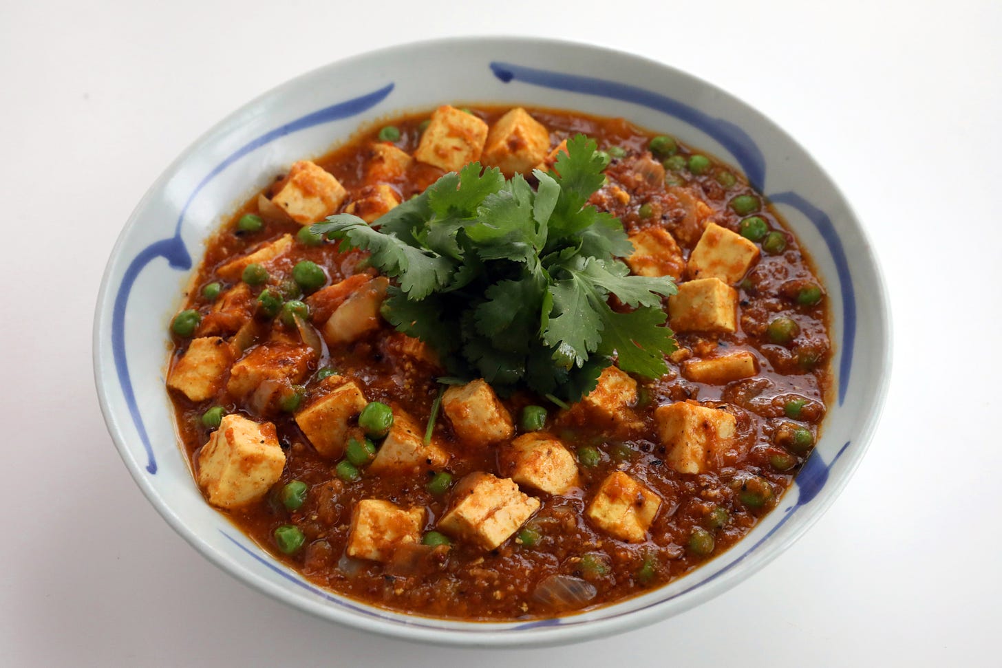 I have a longtime affection for ma po tofu, going all the way back to my vegetarian years when it was by far the most interesting option for me on most Chinese menus. I have made it many, many times over the years, and as I whipped up the batch in the photo the other day—my first meal home after a week away, in a kitchen not overburdened with groceries—it occurred to me that it’s an excellent illustration of this make-do-with-what-you’ve-got ethos.