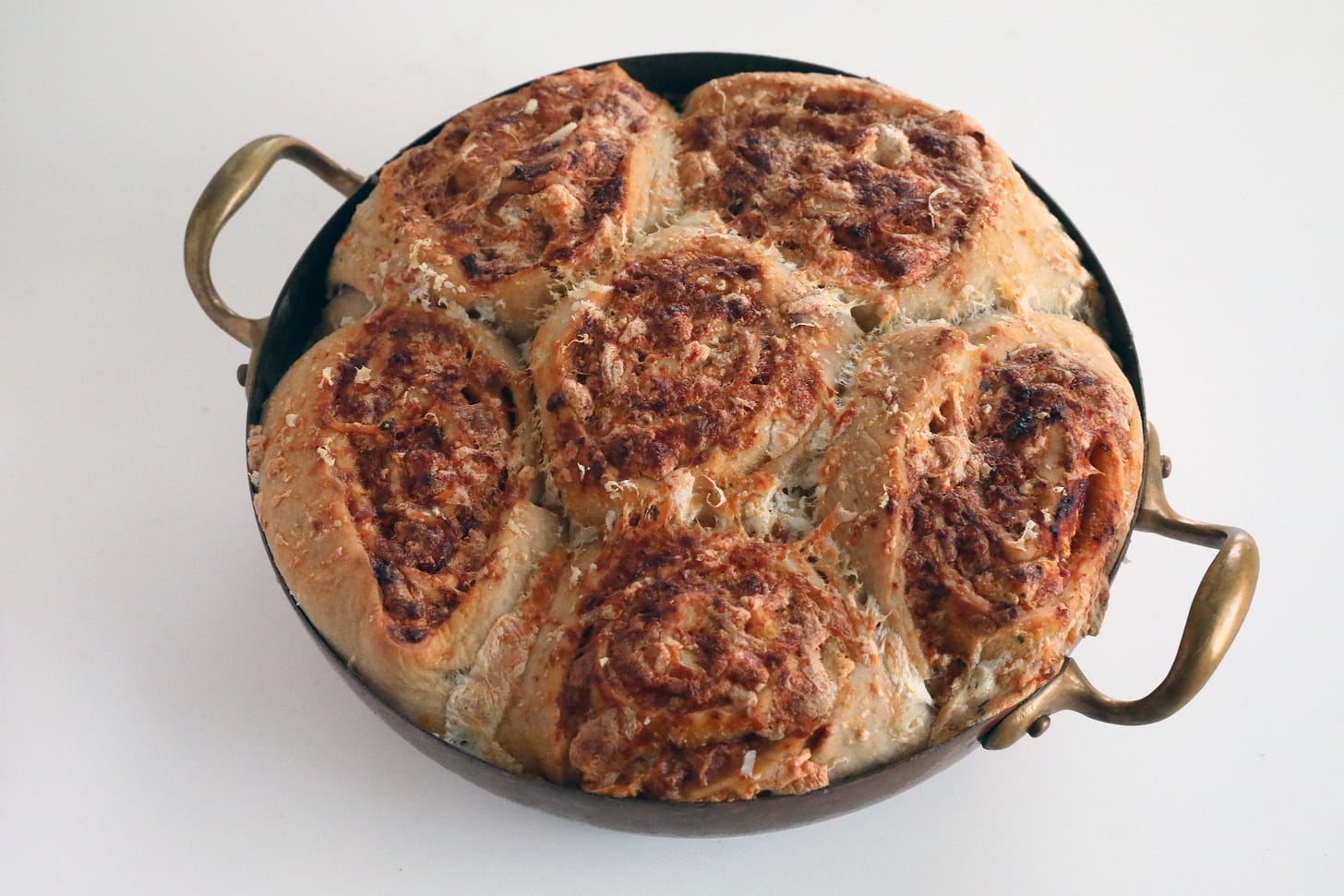 My One Dough To Rule Them All makes amazing bread, as you can see in the photos on that post. With a couple of small tweaks, it makes a pretty skippy pizza dough too. That’s part of the magic of this dough—it can become many things. It contains multitudes, if you will. You can also use whatever pizza dough recipe you like, or even use supermarket dough (as I used to, especially during and after grad school). I’ve got the dough recipe for you, but beyond that I have the key for transforming the topology of pizza so that it looks like cinnamon rolls and eats like something almost bao-like in its bounciness.